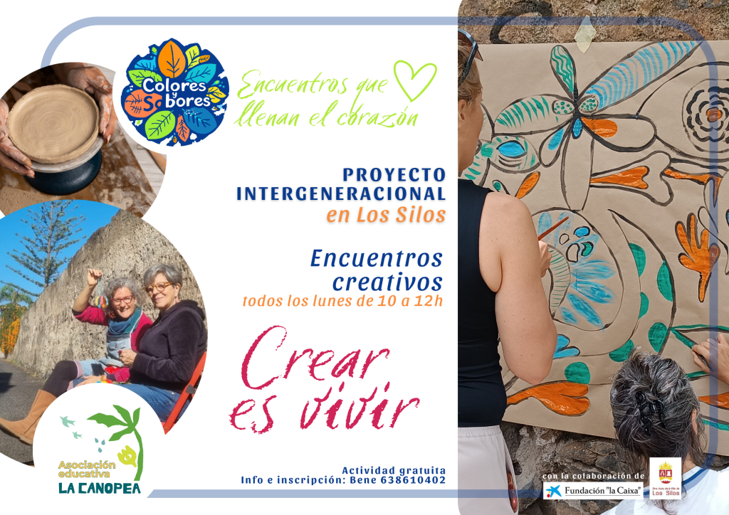 Colores y Sabores es un proyecto intergeneracional de permacultura social que conecta a las generaciones, creando un espacio para que los mayores, los peques y los jóvenes se reúnan, se diviertan y se apoyen mutuamente. A través de actividades artísticas, creativas y en pleno contacto con la naturaleza, se fomenta la participación activa y el bienestar emocional. ¡Todo esto en un entorno rural que invita a fortalecer lazos, prevenir la soledad y fomentar hábitos saludables! Un lugar donde generaciones diferentes aprenden y disfrutan juntas.